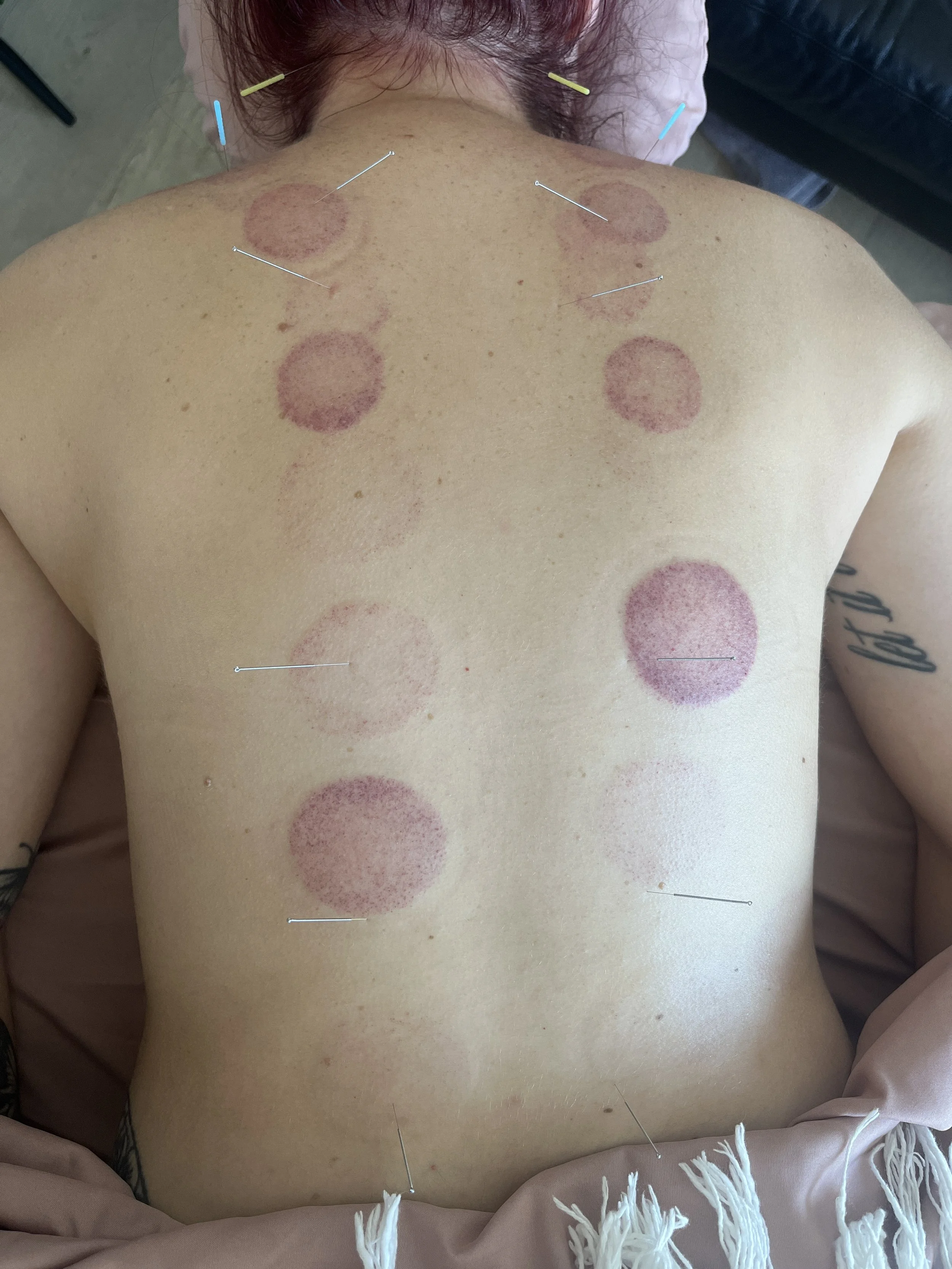 In Traditional Chinese Medicine (TCM), fire cupping is used to move qi and blood, dispel wind and cold, and release stagnation in the muscles and meridians. It’s often applied for musculoskeletal tension, headaches, the common cold, and stress. I find fire cupping to be a supportive modality for the treatment of trauma and emotional constraint and often use it for those that are “carrying the weight of the world on their shoulders”. Though circular marks may appear after treatment, they are not bruises and typically fade within a few days.